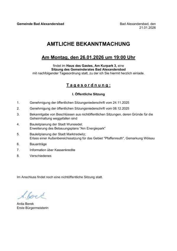Digitale Amtstafel der Gemeinde Bad Alexandersbad
